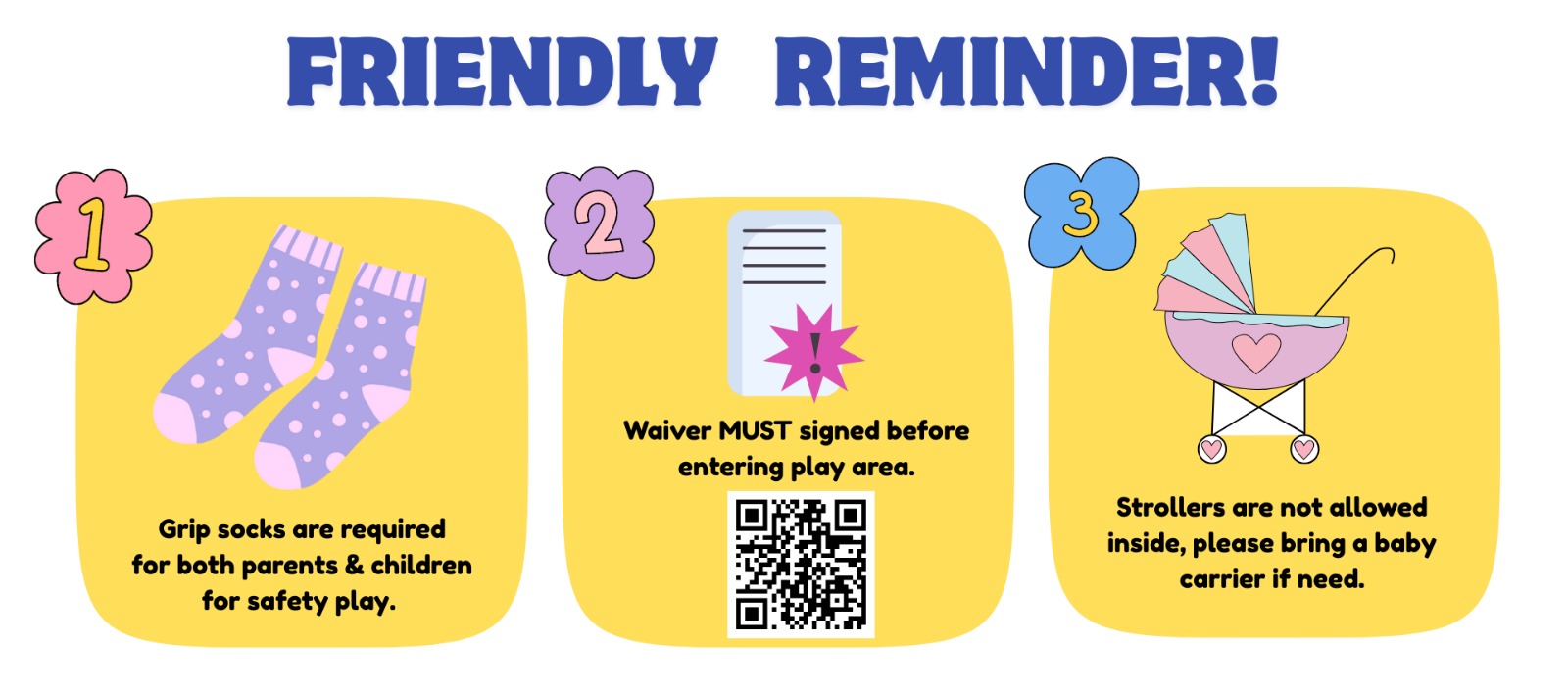 For safety and comfort, all adults and children are required to wear socks. Don’t worry if you forget yours – we have socks available for purchase on-site!